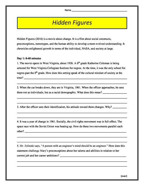 Use This Worksheet To Accompany A Viewing Of Hidden Figures (2016).