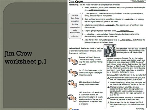 Worksheets Are Jim Crow Laws, Teachers Guide, P A G E 1, Jim Crow Laws And Segregation Work Answer Key, The.